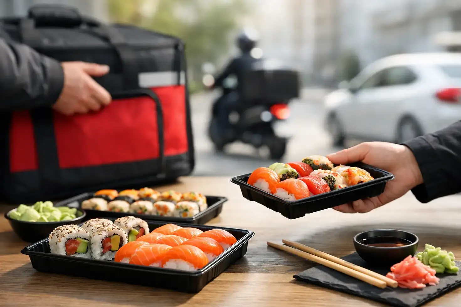 Пицата и бургерите често понасят по-дълъг престой. При сушито не е така. Тук текстурата, температурата и свежестта се усещат веднага. Оризът трябва да е стегнат, но не твърд. Рибата трябва да е свежа, а не уморена от чакане. Темпурата, ако има такава, не трябва да пристига омекнала до степен да загуби смисъл.